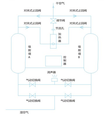 6、采用恒温控制器,保证再生气体温度的恒定,防止吸附剂过热。